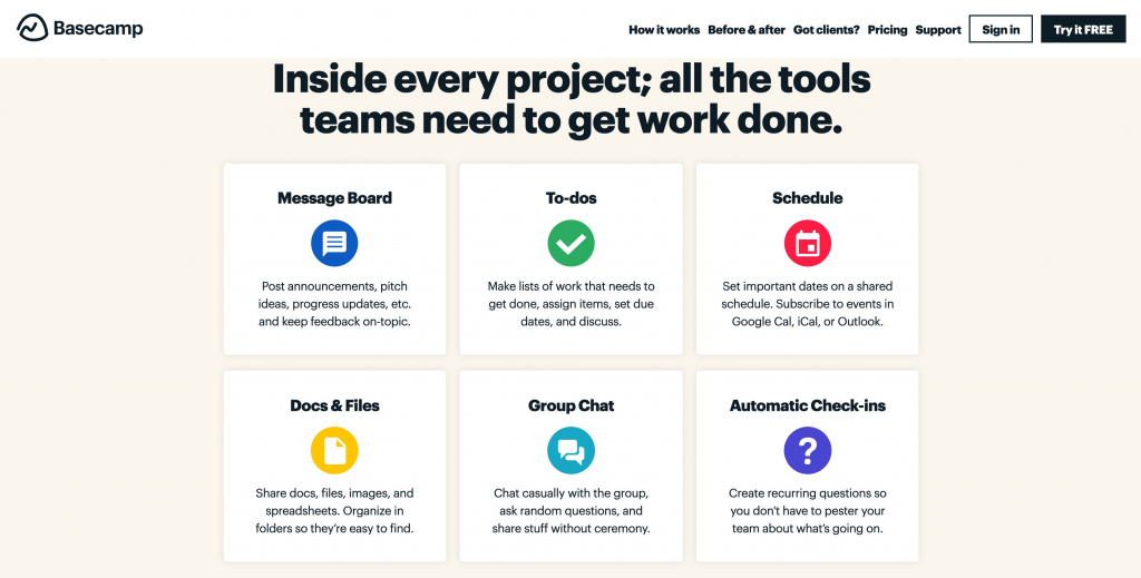 Originally, Basecamp was a project management app. It used time as a benchmark for progress helping you keep track of your dates and your final deliverables. As they evolved, they added more functionality and opened the door for various kinds of collaborative work.