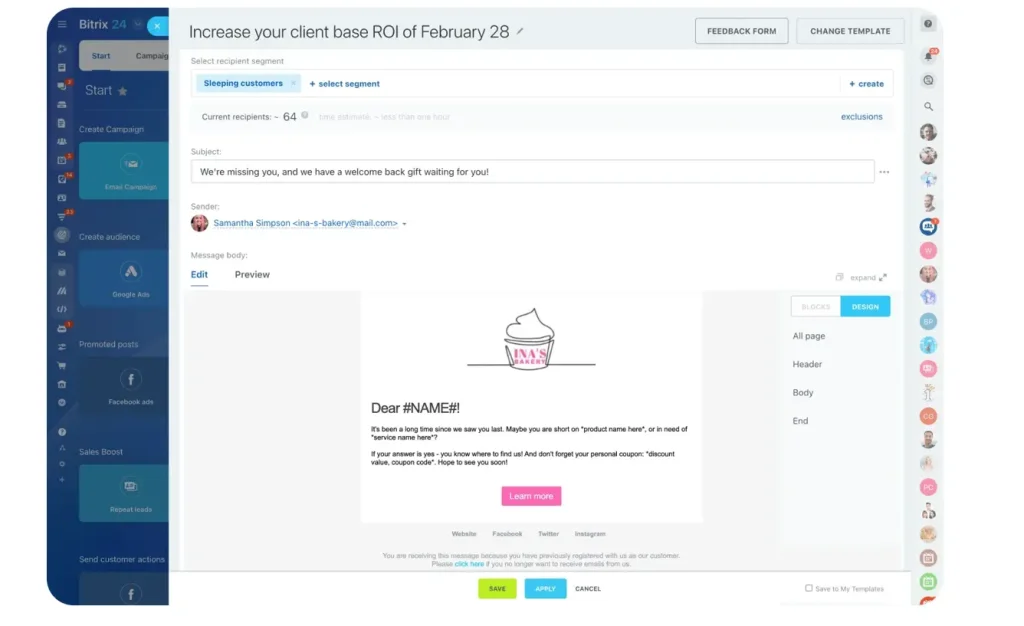 Or maybe you spot a trend: repeat buyers keep coming back for one specific item. With Bitrix24, you can build bundles, launch targeted promos, and send loyalty emails—all without switching tools.