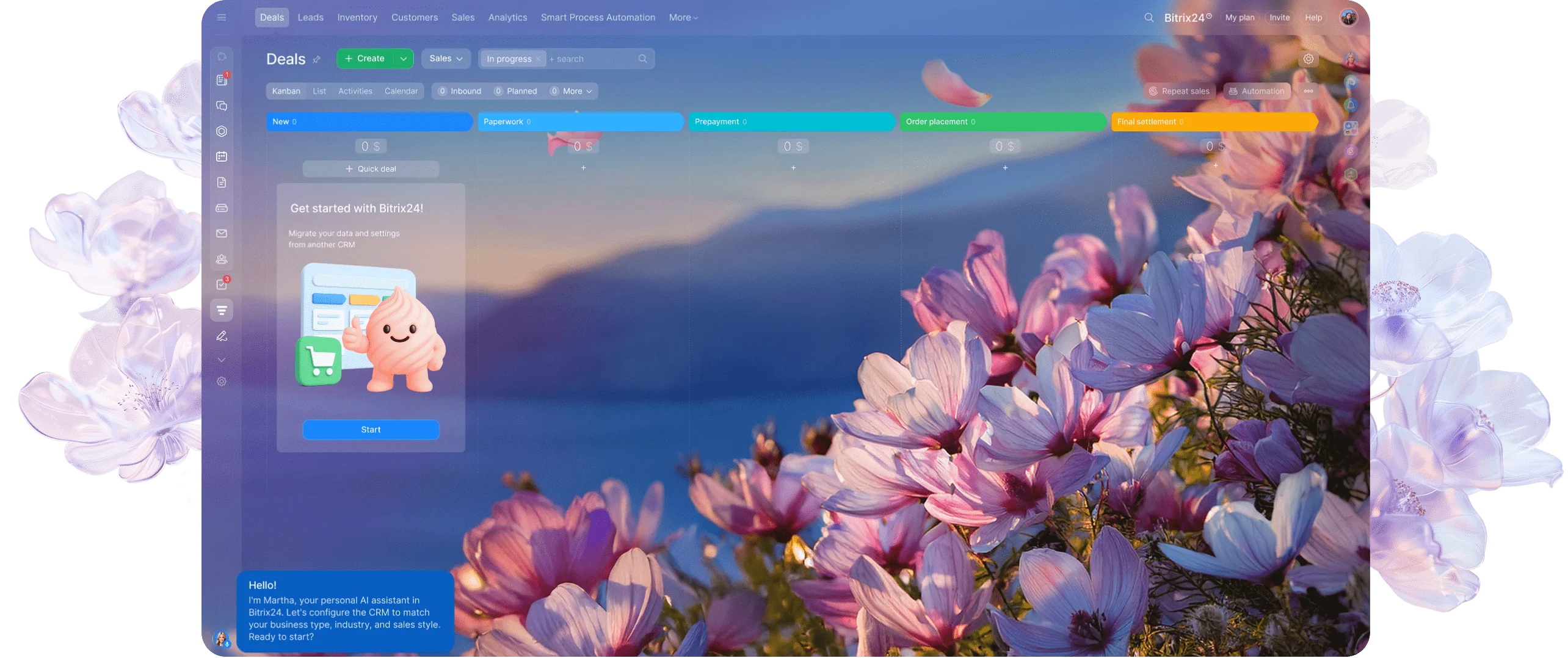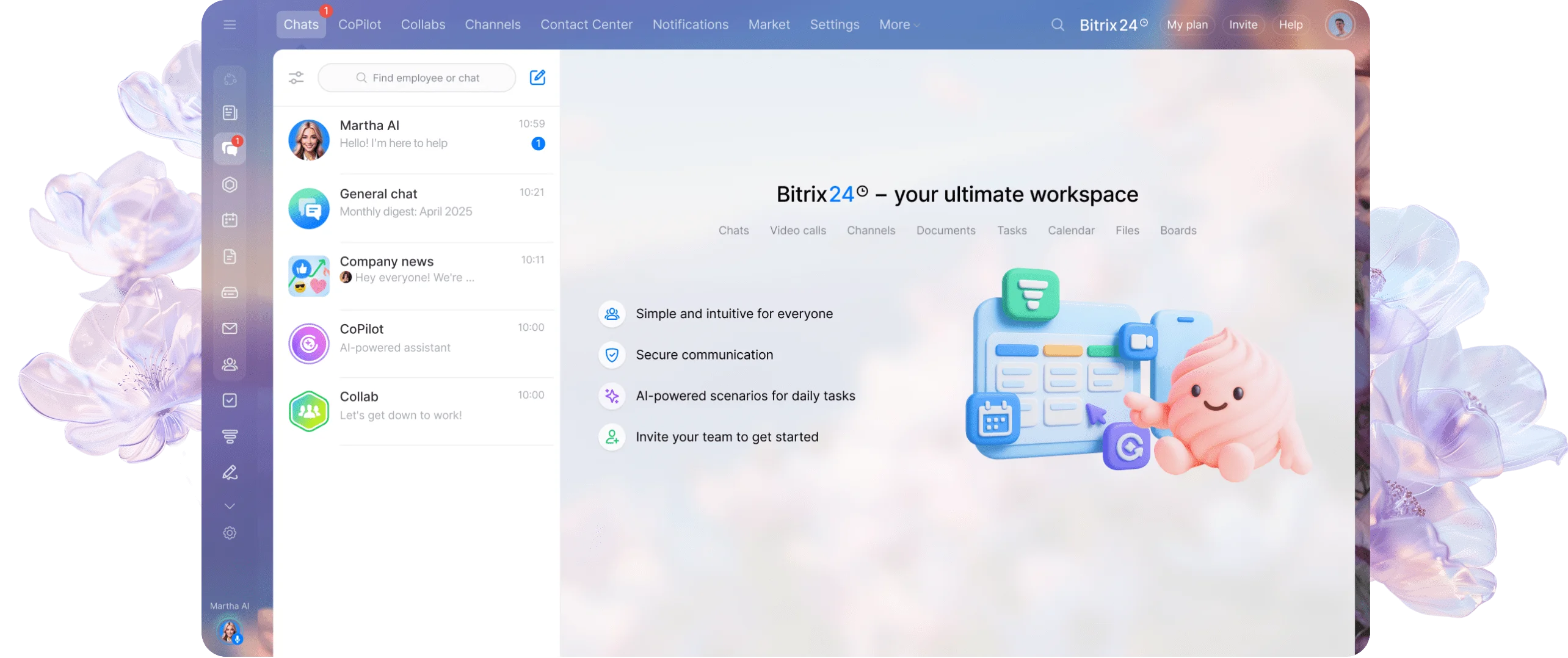 Martha is your new go-to for getting things done. From product onboarding to daily scheduling and tool setup, this AI-powered assistant is here to lighten your workload and help you (and your teammates) navigate Bitrix24 like with ease.