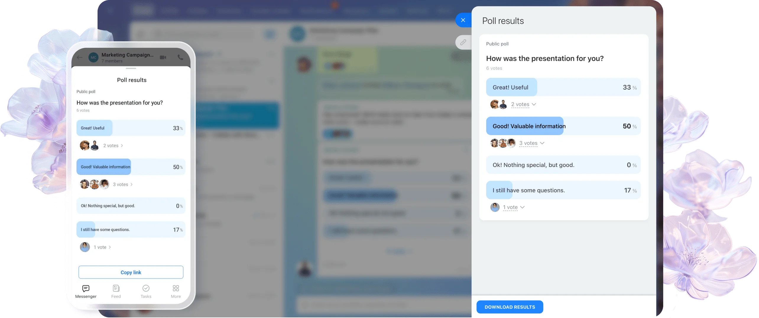 Need to get a team's opinion on something? Instead of a lengthy discussion, you can now easily create and launch a poll, collect results, and even export them to an Excel spreadsheet.
