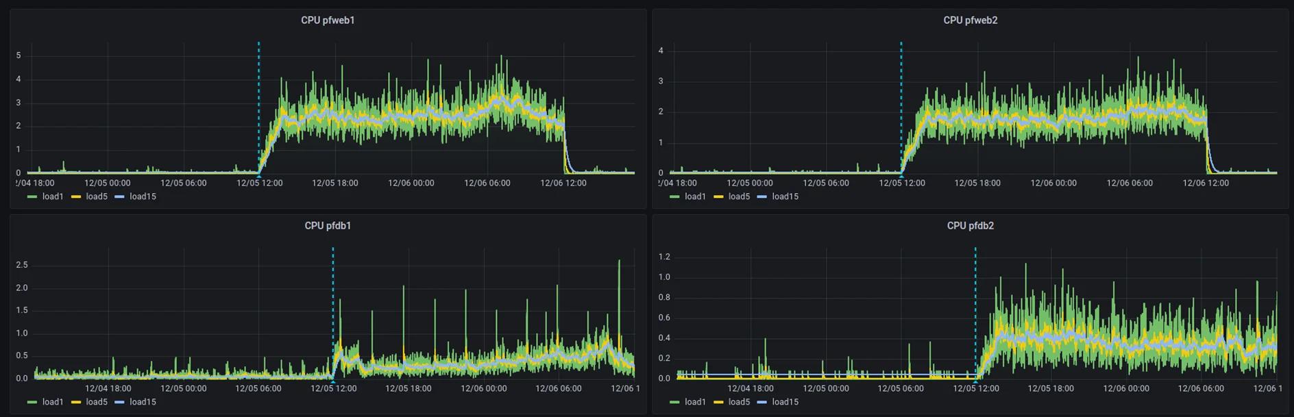 pfdb1, pfdb2 Cluster featuring two database servers: CentOS 7.9, Percona Server (MySQL) 8.0.29, Master / Slave configuration.