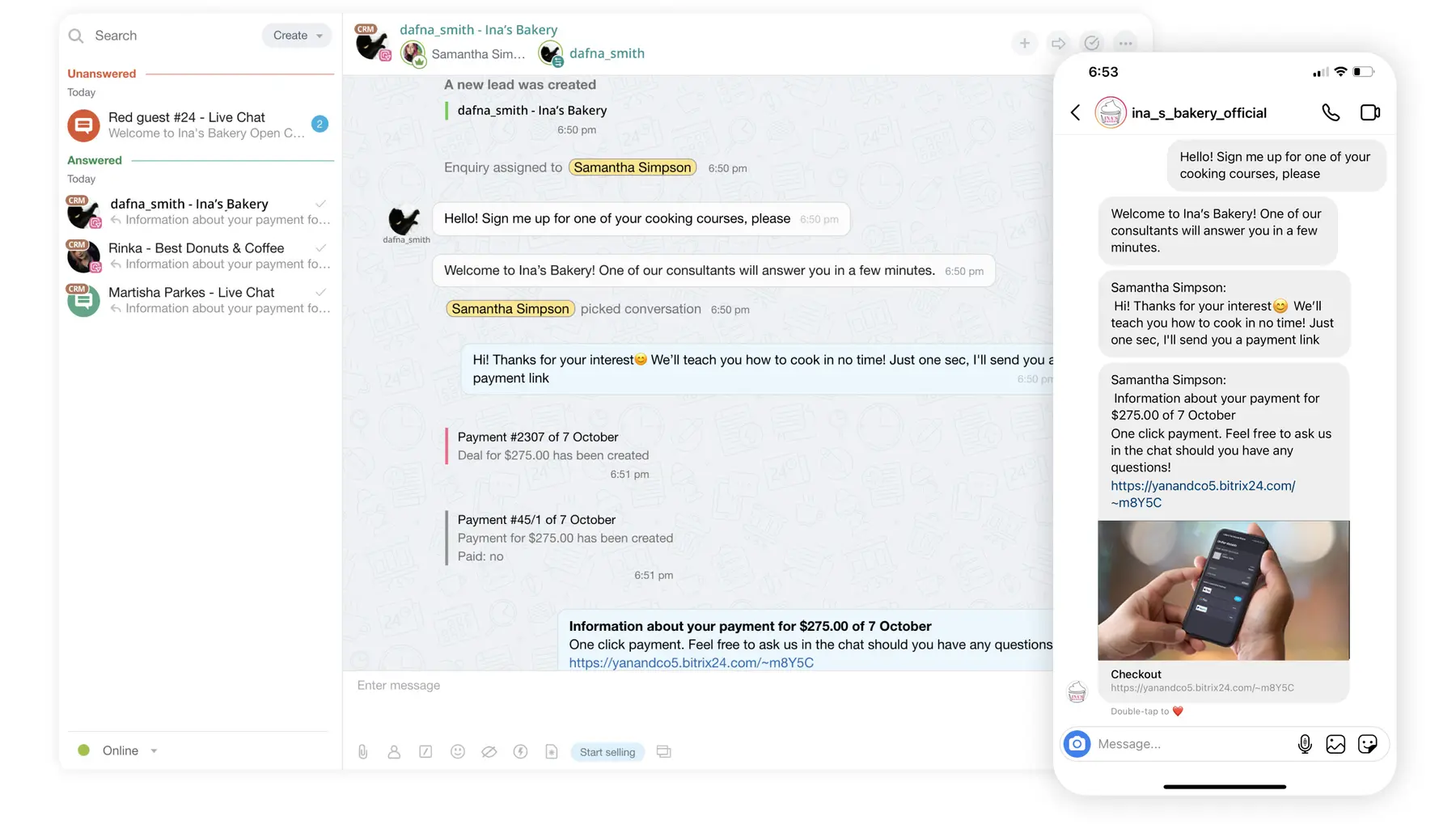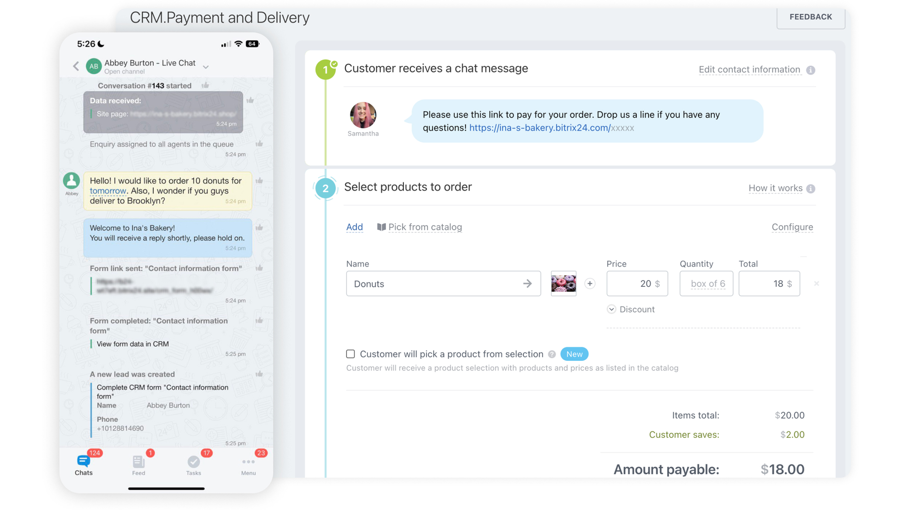 Take and process orders online. Accept payments directly in your CRM and get orders delivered to your clients. Track orders online. All within Bitrix24.
