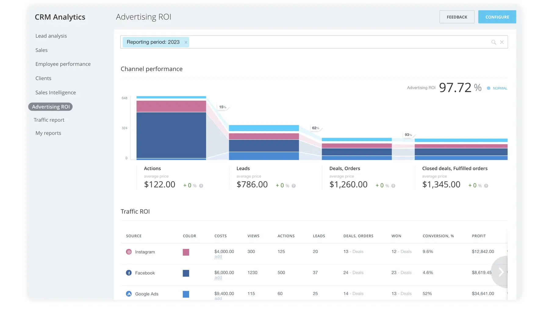 Promote your brand and run marketing campaigns targeted at specific customer segments via Facebook, Instagram, messengers, email, SMS, and push notifications.