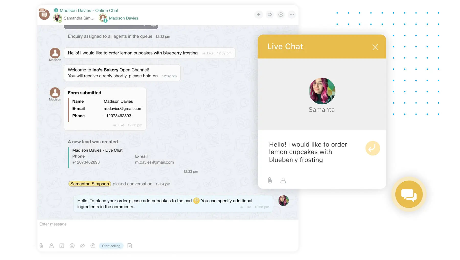Enable live chat on your website to handle orders and provide quality customer service. Set up a chatbot for quick replies & smart request routing.