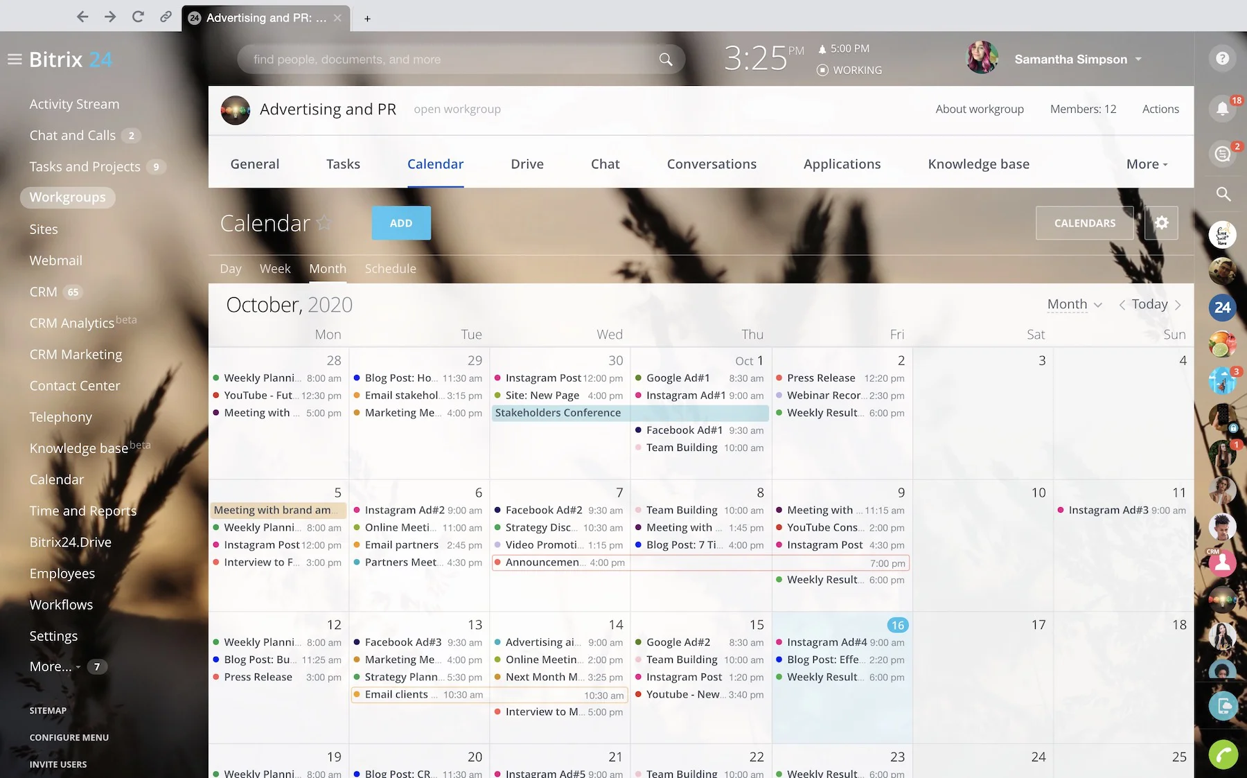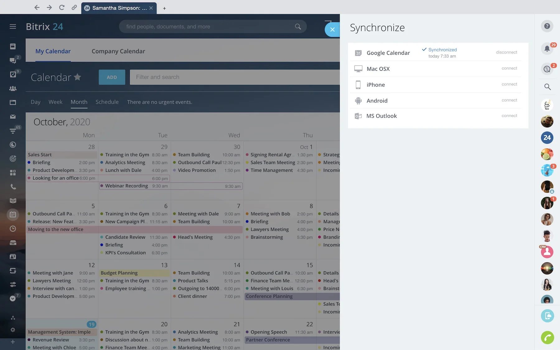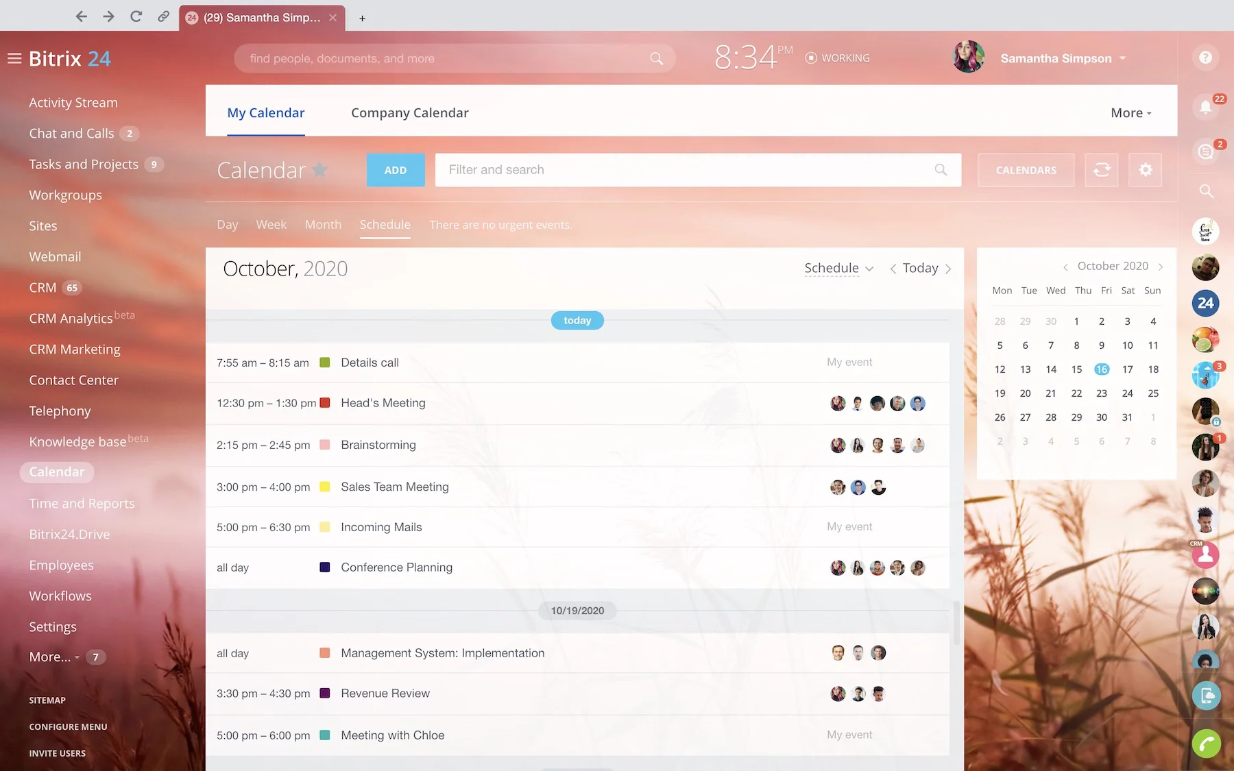 Organize meetings and events, invite your team members and external users, set appointments and plan your day – all with Bitrix24 calendar collaboration tools.
