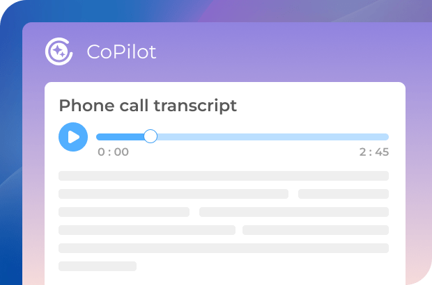 Got off the phone after a 35-minute call with a client? No need to go back and listen through it all – our CoPilot will transcribe your call in a nice and easily readable text format.