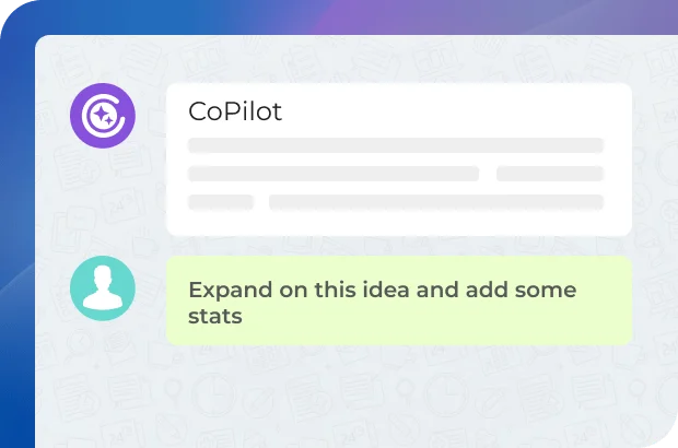 Just enter a subject and the tone (e.g., formal, engaging, informative, etc.), and CoPilot will handle the rest. You can also ask our AI to rewrite a text from a different perspective or in a different tone.