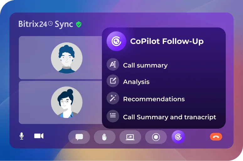 Just launch the CoPilot Follow-Up tool during a video call and our AI-powered assistant will start its unbiased analysis, resulting in a call summary and a detailed transcript with timestamps.