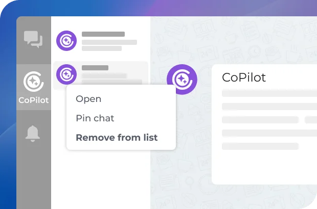 Being an (artificially) intelligent piece of software, CoPilot is good at keeping secrets. Your data gets deleted immediately from the provider's server after you close the CoPilot dialog in chat, tasks, feed, or elsewhere in Bitrix24.
