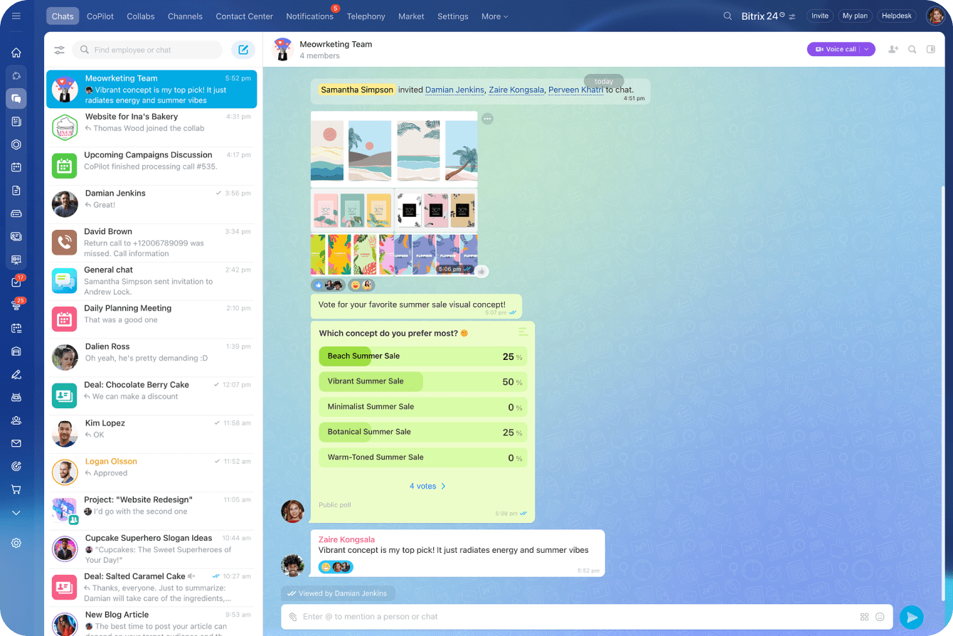 Bitrix24 Messenger ensures swift, productive, and secure communication that's organically tied in with the rest of our collaboration tools and CRM.
