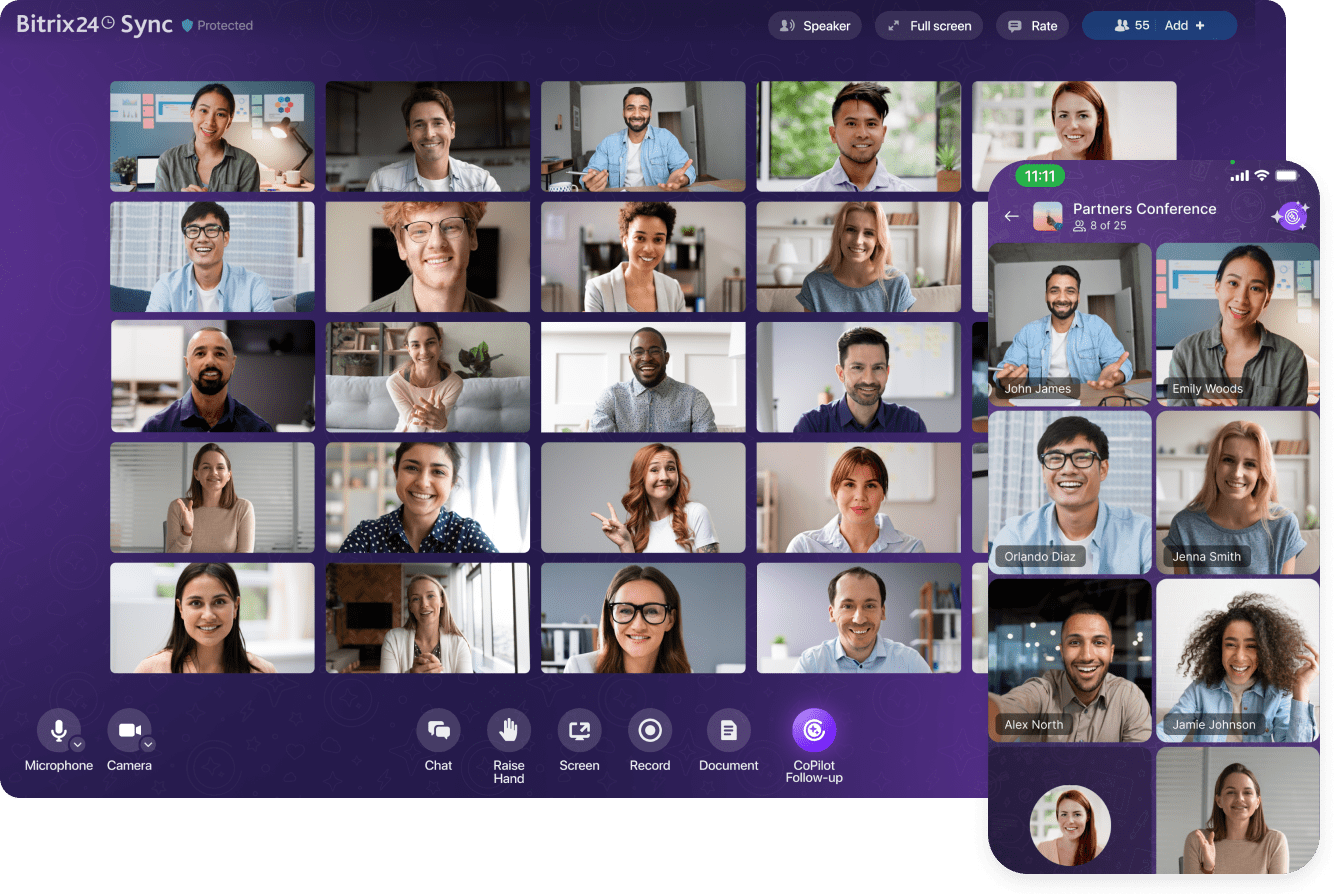 Online meetings in our communications software are everything you’d expect from top-notch video conferencing software – plus, they’re already integrated into your chats, tasks, projects, calendar, CRM, and other tools.