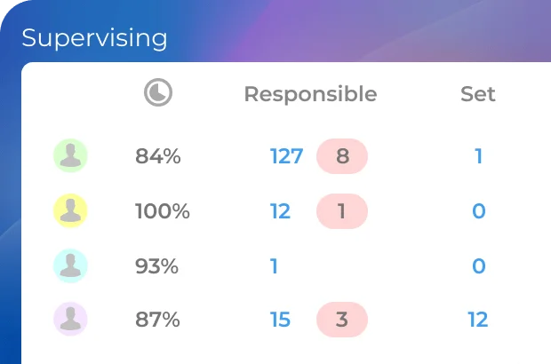 In the supervisor mode, you can see all the tasks your subordinates are working on, assisting, or following, as well as their efficiency. This is a must-have tool for task planning and workload optimization.