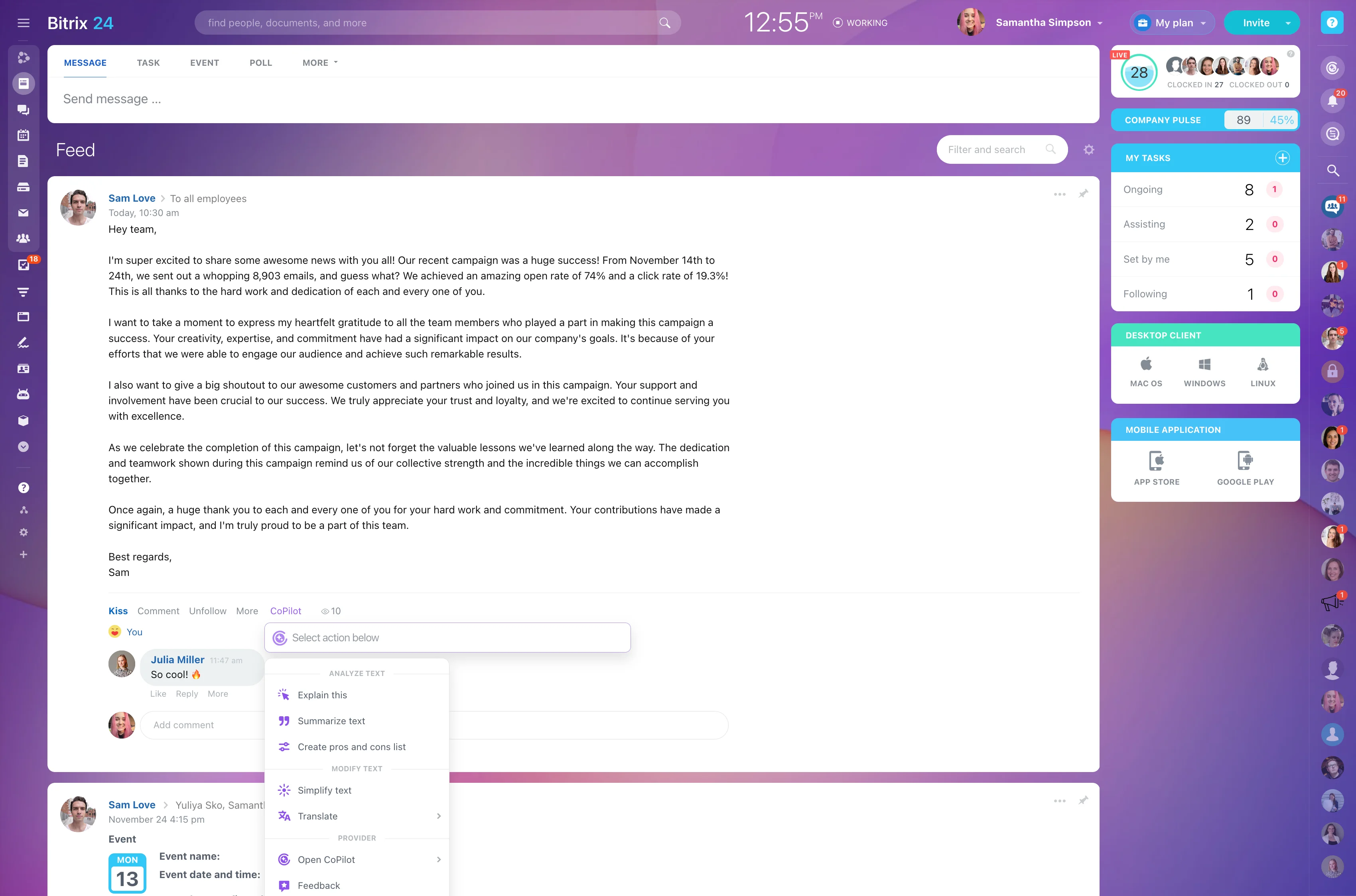 Bitrix24 syncs with Microsoft Active Directory, reducing manual data entry and minimizing errors. Changes made in AD are immediately reflected in Bitrix24.